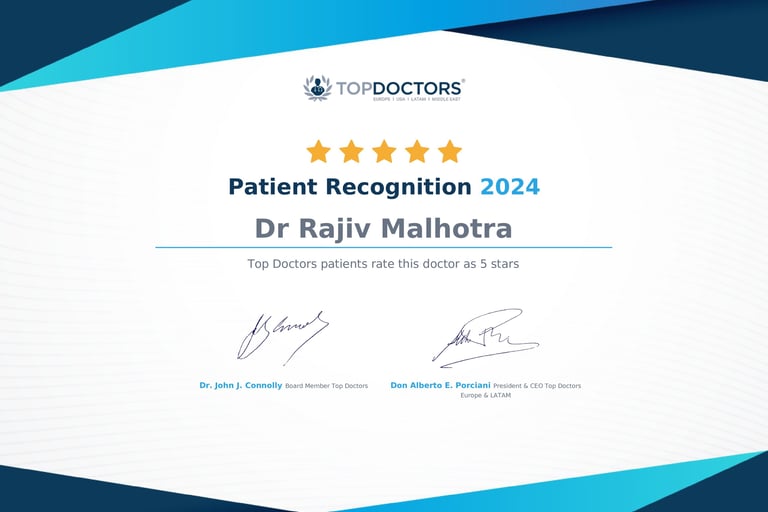 Dr Malhotra will provide you with a written report after the initial consultation, outlining the likely diagnosis and treatment options.